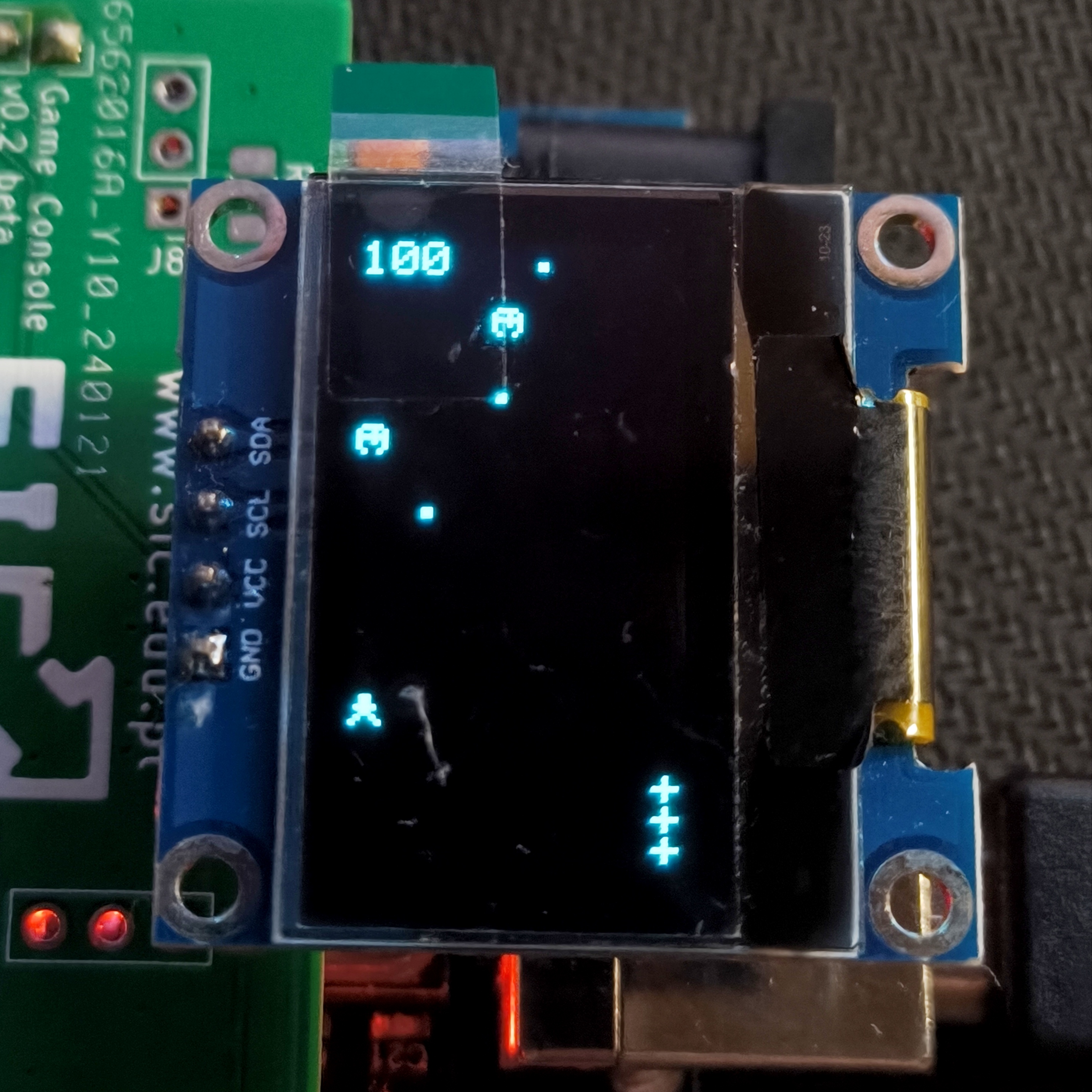 Projekt przedstawia klasyczną grę zręcznościową typu Space Shooter, w której gracz steruje statkiem kosmicznym i eliminuje nadlatujących przeciwników. Gra została wykonana na ekranie OLED o rozdzielczości 128x64 piksele, a sterowanie odbywa się za pomocą przycisków kierunkowych oraz przycisku strzału.