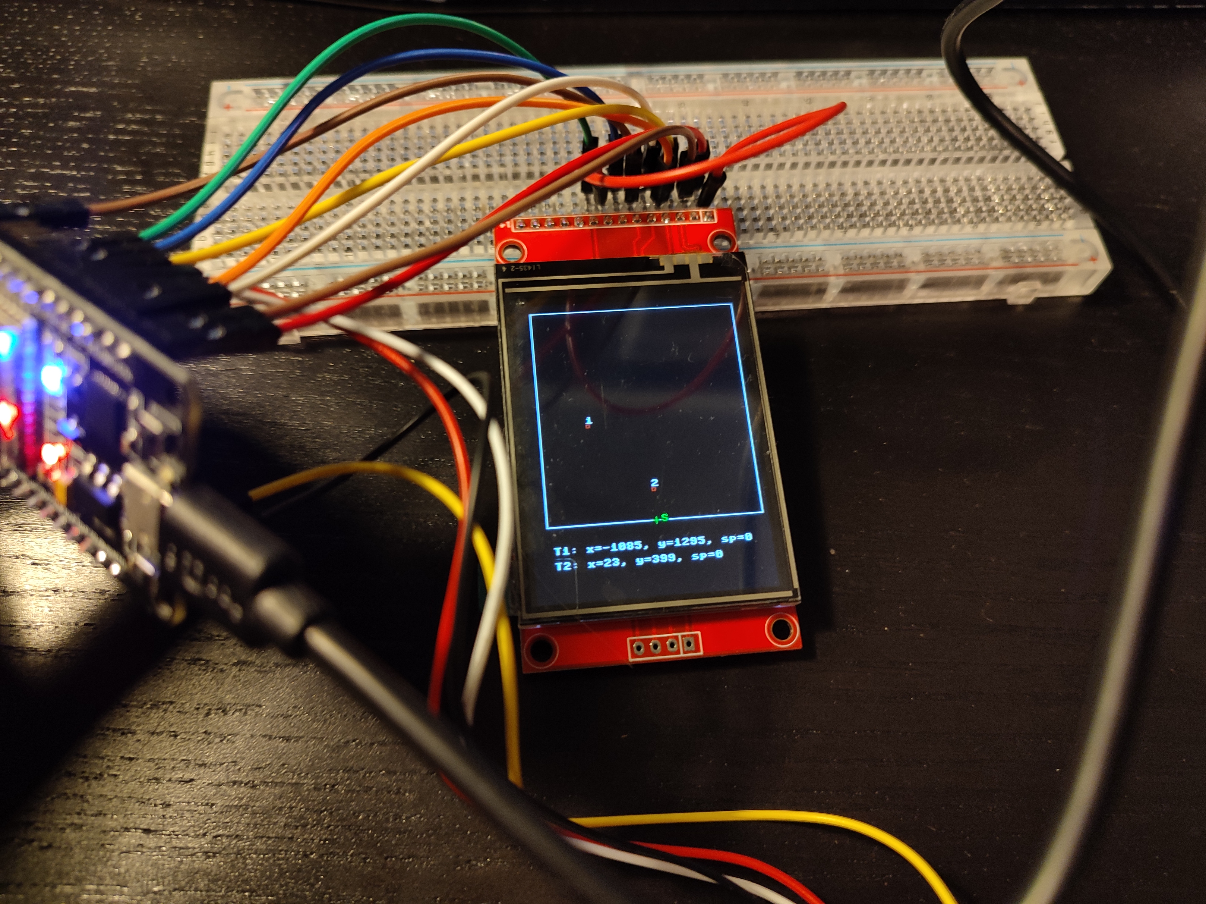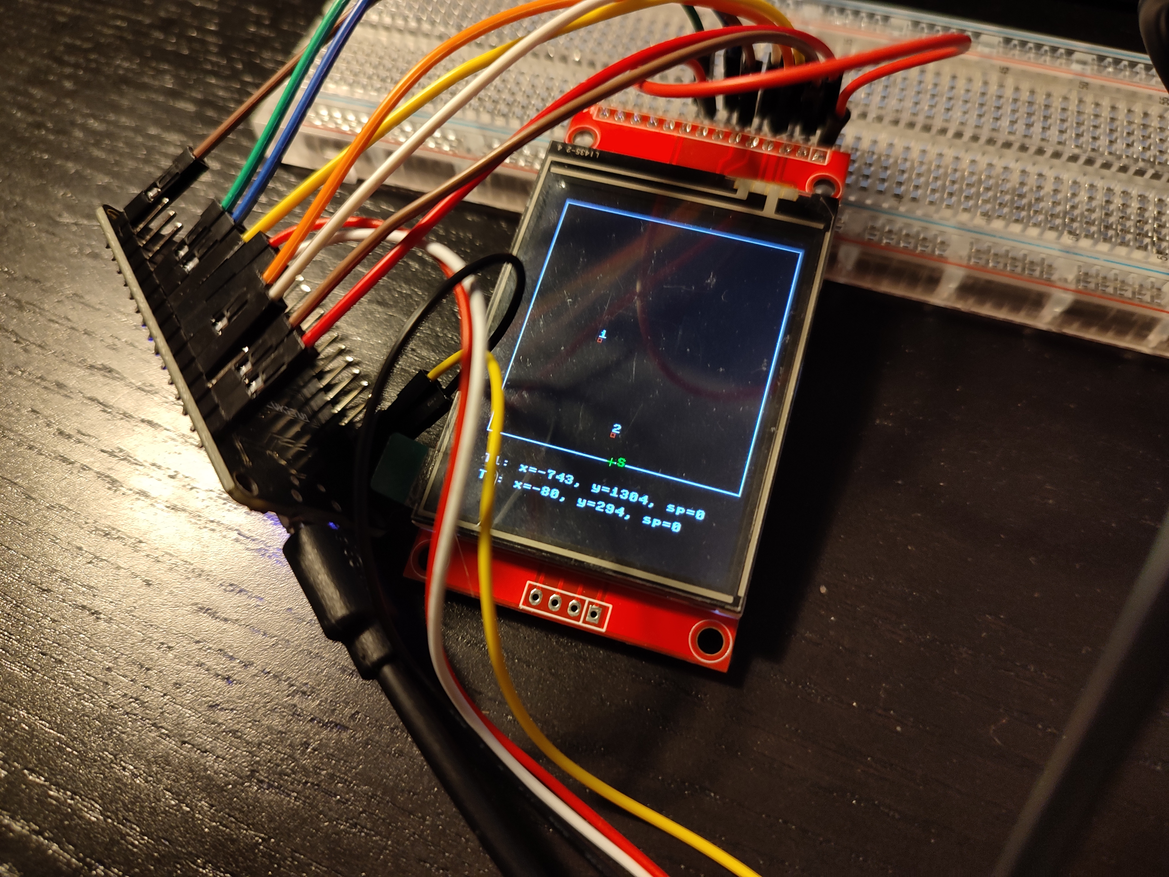 Cele są również rysowane na wyświetlaczu dla wizualizacji danych. Dzięki temu widać, czy czujnik podaje sensowne wartości.