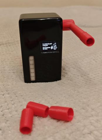Projekt precyzyjnego alkomatu badającego stężenie alkoholu we krwi na podstawie zawartości cząsteczek alkoholu w wydychanym powietrzu obejmuje integrację wyświetlacza OLED i graficznego interfejsu użytkownika sterowanego za pomocą czujnika zmiany ciśnienia wykrywającego początek pomiaru z precyzyjnym czujnikiem stężenia alkoholu w powietrzu w specjalnie zaprojektowanej komorze pomiarowej ze stałym, kontrolowanym przepływem powietrza. Informacja zwrotna dla użytkownika prezentowana jest w samodzielnie zaprojektowanym interfejsie użytkownika na ekranie OLED oraz za pomocą adresowalnego paska LED. Po wstępnej kalibracji czujnika można było dobrać odpowiedni kontrolowany przepływ powietrza za pomocą malutkiego wentylatora sterowanego sygnałem PWM oraz kształt całej komory pomiarowej. Alkomat zasilany jest pojedynczym ogniwem litowo-jonowym 18650 o pojemności 3000mAh co wystarcza na miesiąc codziennego użytkowania. Alkomat może przy okazji pełnić funkcję power-banku. Całość zamknięta jest w małej i lekkiej obudowie wydrukowanej w 3D, która została dodatkowo spolerowana i zabezpieczona lakierem bezbarwnym, dzięki czemu nie odbiega wyglądem od wysokiej jakości produktów produkowanych masowo.