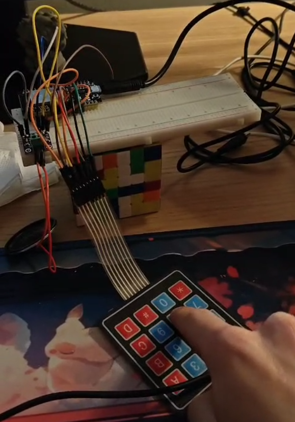 Pianino na klawiaturze numerycznej: W tym etapie wykorzystaliśmy klawiaturę membranową 4x4 (typu kalkulator/zamek kodowy). Mikrokontroler odczytuje wciśnięte klawisze numeryczne i przypisuje im konkretne częstotliwości dźwięku. W efekcie powstał prosty instrument, który pozwala na wygrywanie melodii pojedynczymi dźwiękami, co pozwoliło nam zrozumieć podstawy obsługi wejść cyfrowych.