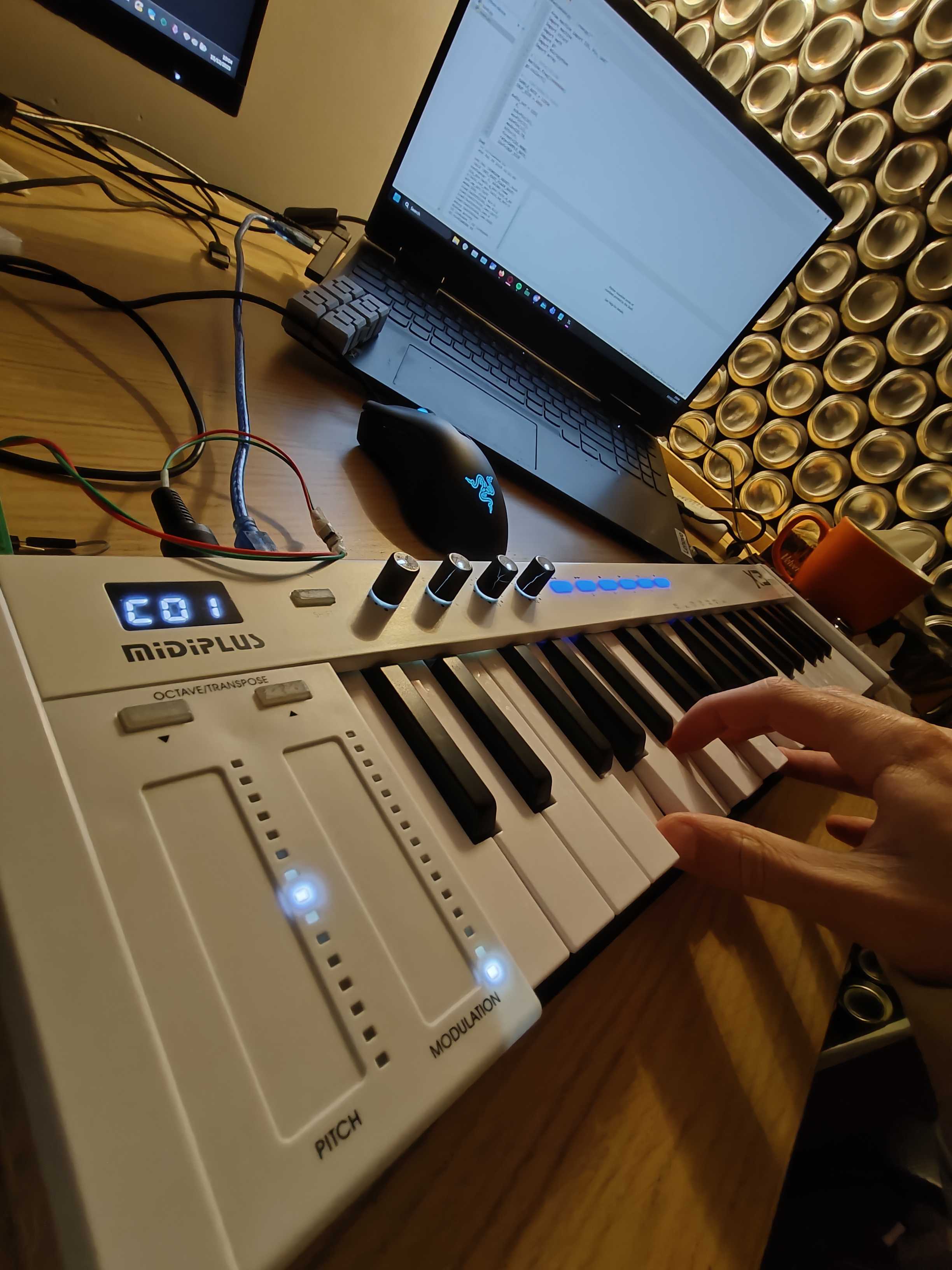 Dodatkowo jedno z pokręteł (CC 7) zaprogramowaliśmy jako główny regulator głośności, co pozwala na płynne ściszanie i podgłaśnianie instrumentu bez potrzeby ingerencji w kod czy wzmacniacz.