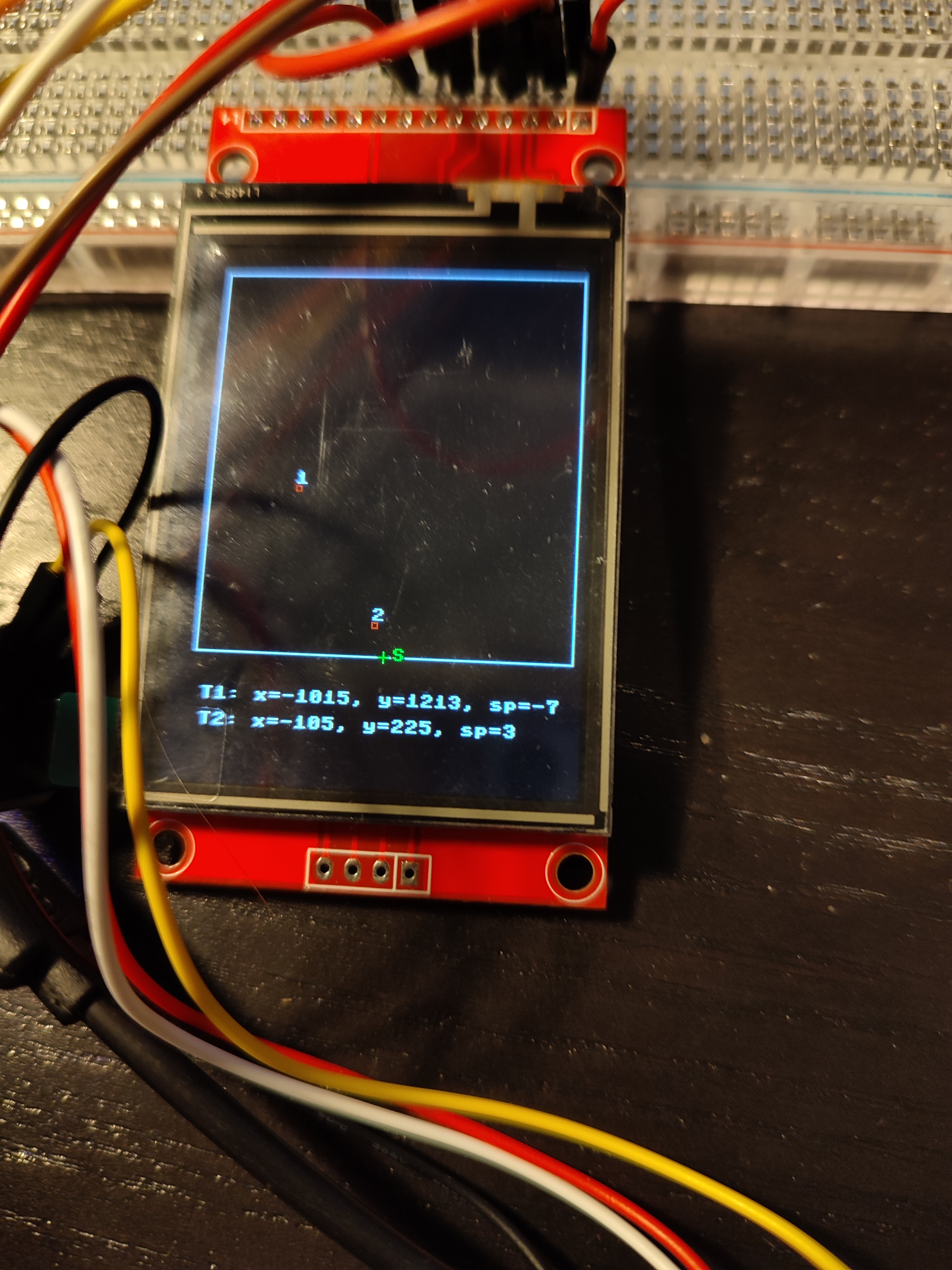 Cele są również rysowane na wyświetlaczu dla wizualizacji danych. Dzięki temu widać, czy czujnik podaje sensowne wartości.