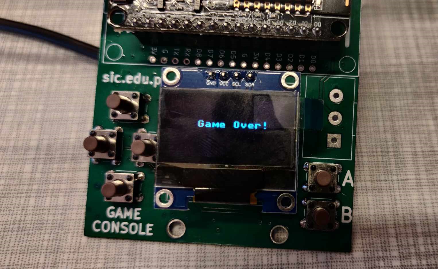 Projekt polegał na utworzeniu gry pong dla dwóch graczy przy użyciu modułu ESP8266 i płytki do gier "game console" od sic.edu.